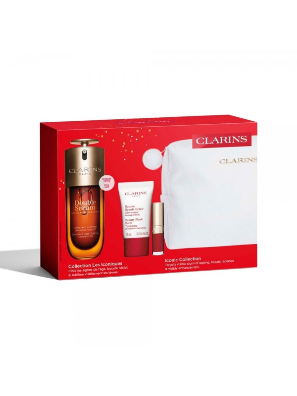 Un exclusiu cofre d'edició limitada que reuneix els icònics Double Serum i Double Serum Eye, juntament amb essencials de maquillatge per a una pell radiant, una mirada intensa i llavis lluminosos. Tot en un sofisticat necesser vermell, perfecte per sorprendre.