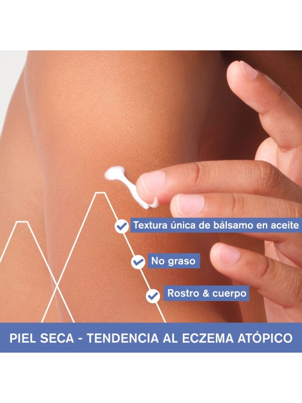 Aquest oli netejador calmant, enriquit amb ingredients actius relipiditzants i hidratants, protegeix contra la sequedat de la pell, calma la picor associada a la pell seca i deixa una pel·lícula protectora. La base netejadora suau, sense sabó ni perfum, garanteix una neteja delicada.