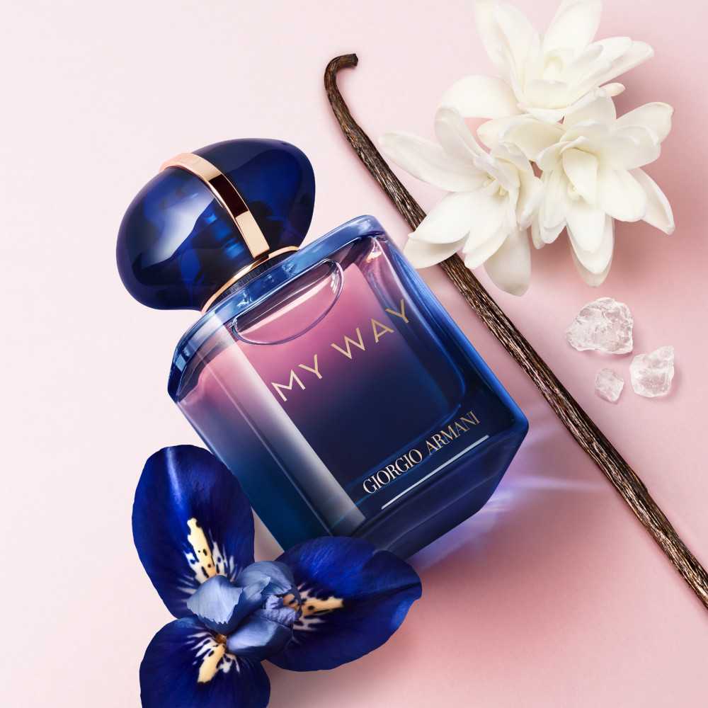 My way Parfum és una invitació a un viatge d'autodescobriment, que captura la sensació d'afirmació de la vida d'un pas cap a allò desconegut. Un bouquet floral intens i enfustat, nascut del contrast entre la brillant Tuberosa solar i el majestuós Iris Pallida blau, encapsulat en un nou flascó contrastat, vestit amb tons que es graduen del blau tinta a la base al rosa radiant al coll. La fragància s'obre amb les notes fresques i cítriques de l'essència de bergamota de Calàbria, que es barregen amb l'espurnejant flor de tarongina enflorada en essència de taronja amarga d'Egipte.