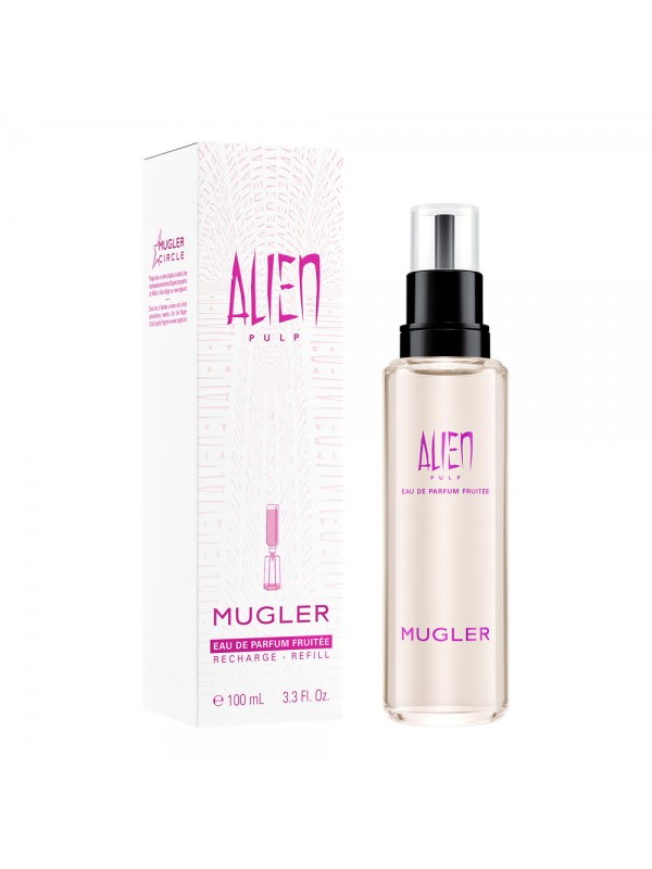 Mugler Alien Pulp Eau de Parfum captura l'essència de la temptació prohibida a través d'un acord floral afruitat i deliciós. La fragància s'obre amb la sucosa intensitat d'un acord de gerds rossos, barrejant-se amb la cremosa sensualitat del gessamí grandiflorum. A sota, mescles suaus i fusta de Cashmeran creen una calidesa suau i envoltant que roman a la pell. El resultat és un aroma polpós, suprasensual que gairebé pots assaborir, vibrant, addictiu i irresistiblement femení. El pot recarregable de línies escultòriques brilla amb un degradat de rosa a transparent, reflectint la seducció desenfadada que guarda al seu interior. Dissenyat per emplenar-se infinitament, Alien Pulp celebra el luxe sostenible amb estil. Polvoritza a l'aire i camina a través de la fragància, o aplica'l als punts de pols perquè es desplega naturalment. Experimenta el sabor del fruit prohibit i encarna la temptació extraordinària d'Alien Pulp.