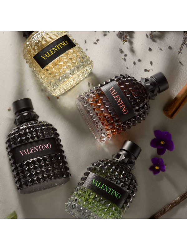 Born in Roma Uomo de Valentino és un Eau de Toilette d'home que pertany a la família olfactiva Amaderada Aromática llançat el 2019. Aquesta nova fragància celebra les arrels de la marca, la individualitat i la personalitat que el caracteritza en una autèntica creació Haute Couture. Elegància representada amb notes olfactives seleccionades minuciosament, com la frescor picant de la sal i el gingebre, l'absolut de fulles de violeta amb caràcter aromàtic intens o el vetiver vibrant i masculí tan de moda a la perfumeria contemporània. NOTES ATEMPORALS. Aquest perfum gaudeix d´un caràcter atemporal que el converteix en una opció idònia per a qualsevol estació de l´any. Es pot utilitzar tant de dia com de nit, disposa d'una gran versatilitat.