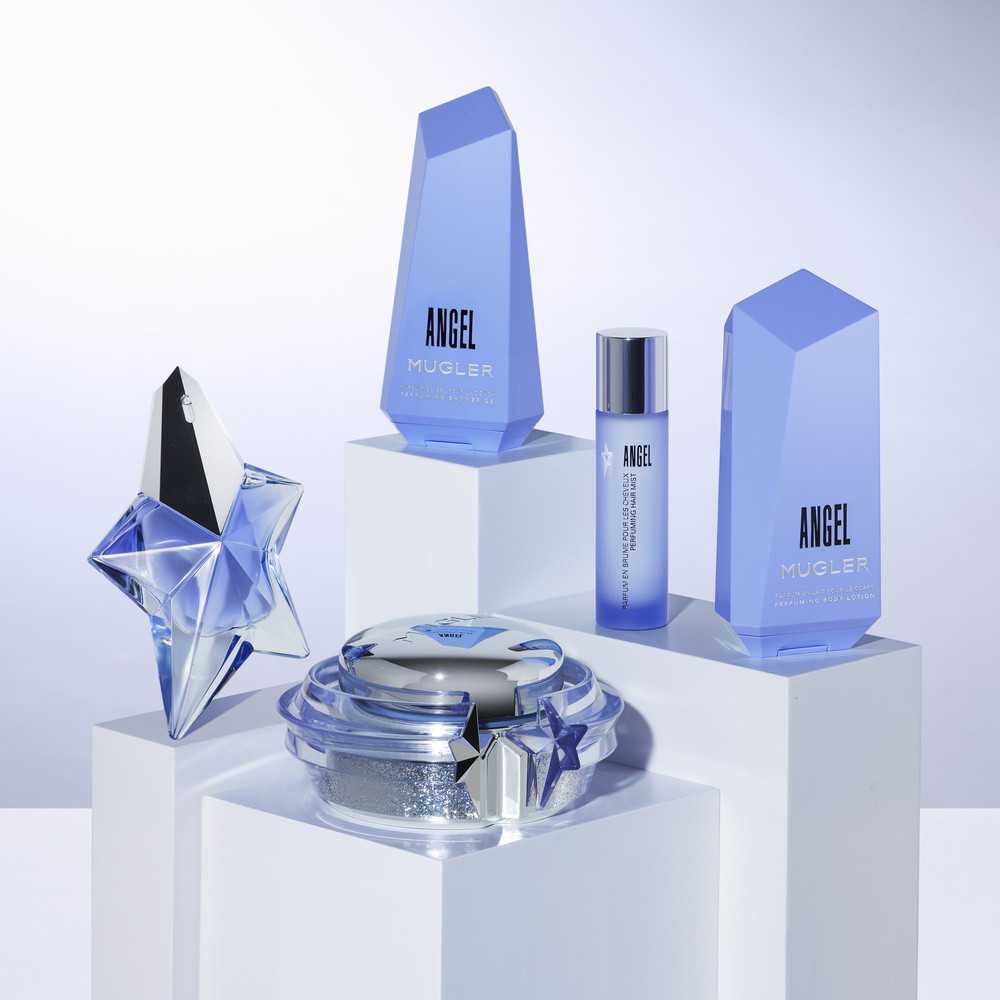 El perfum de dona Angel de Mugler és la cinquena essència de la perfumeria Mugler . Un perfum mai abans vist, mai abans imaginat, creat com una homenatge a la pell que toca ia la dona que el porta. Angel ofereix a la dona el camí per assolir els seus somnis, és l'estrella que guia en aquest trajecte i que aporta força i emoció. Angel és un Eau de Parfum innovador perquè inaugura la categoria de fragàncies llamineres, un veritable remolí de desitjos. La seva fragància combina el poder del pachulí amb la dolçor addictiva del praliné, els fruits vermells i un envoltant acord de vainilla.
