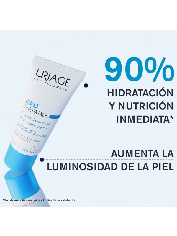 Hidratació intensa durant 24 hores per a pells seques a molt seques i deshidratades. Una crema hidratant cremosa, envoltant, rica, no greixosa i no enganxosa que serveix com a perfecta base de maquillatge. Apta per a tot tipus de pell, fins i tot sensibles, ideal tant per a homes com per a dones.La crema facial rica està dissenyada amb molta cura amb l'innovador pegat H20 que potencia la hidratació, ÀCID HIALURÒNIC i MANTECA DE KARITÈ per a una pell flexible, nodrida de forma duradora i calmada. La pell queda radiant i lluminosa. Resultats visibles: 90% d'hidratació i nutrició immediates*.El deliciós aroma de Bergamota i Préssec, sobre una base de Cedre, afegeix encant.Apte per a tots els tipus de pell, fins i tot les sensibles - No comedogènic - Alta tolerànciaEls productes Uriage, desenvolupats en col·laboració amb dermatòlegs, ofereixen una àmplia gamma de productes per a la cura de la pell d'alta tolerància, adequats per a diferents tipus de pell, incloses les pells extra seques, sensibles, madures, greixoses i amb tendència acneica, destinats a persones de totes les edats.* Test d'ús - 20 voluntaris - 21 dies: % de satisfacció