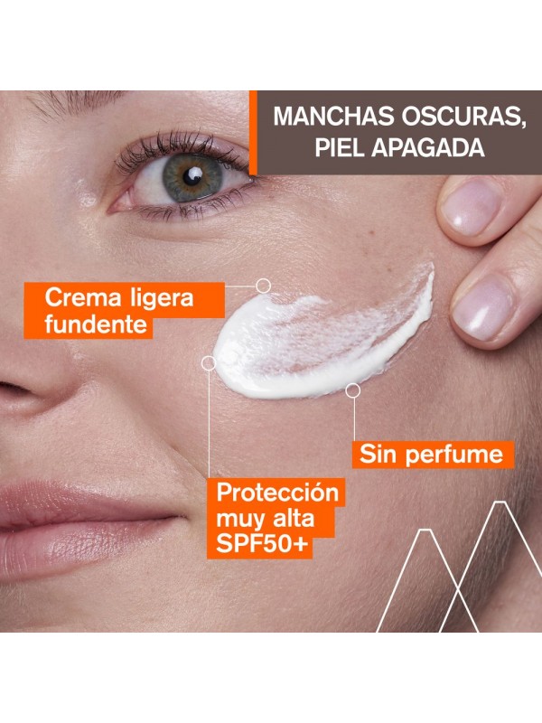 Aquesta crema facial fundent i lleugera, sense perfum, actua sobre diferents tipus de taques: taques fosques, màscara de l'embaràs, post procediments dermoestètics i peelings, pell apagada... Apta per a tota mena de pells.Enriquit a VITAMINA C, aquesta cura atenua les taques fosques, aclareix i unifica el to de la pell per deixar-la resplendent. Formulat amb MELA TECHNOLOGY, d'origen 100% natural, ajuda a prevenir les taques fosques. 87% redueix la intensitat de les taques*.[PROTECCIÓN MUY ALTA] Protegeix dels raigs UVA-UVB gràcies a la seva protecció SPF50+ i preveu la reaparició de taques fosques.Desenvolupat i recomanat per dermatòlegs - Apte per a tot tipus de pells fins i tot sensibles - Sense perfum - No comedogènic - Alta tolerància - No irrita els ulls.Els productes Uriage, desenvolupats en col·laboració amb dermatòlegs, ofereixen una àmplia gamma de productes per a la cura de la pell d'alta tolerància, adequats per a diferents tipus de pell, incloses les pells extra seques, sensibles, madures, greixoses i amb tendència acneica, destinats a persones de totes les edats.*Test d'ús - 22 voluntaris - 21 dies: % de satisfacció