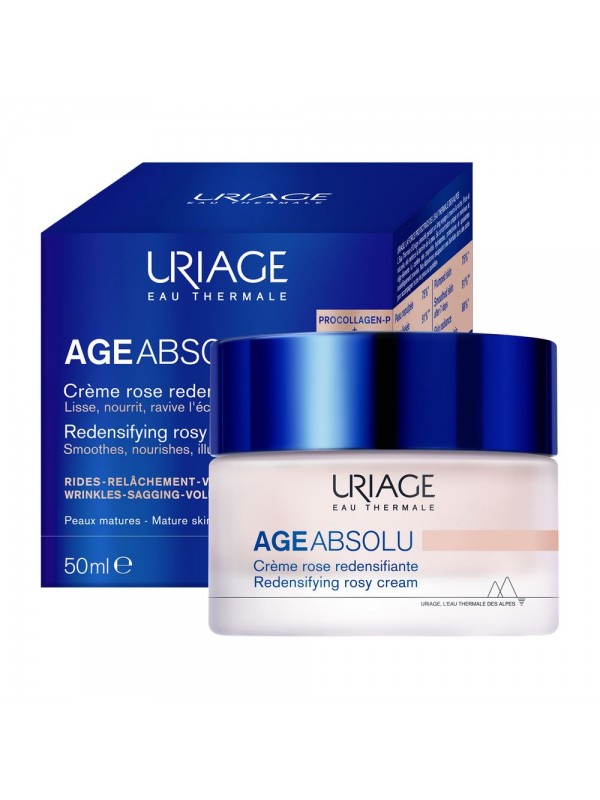 URIAGE AGE ABSOLU Anti-Aging-Creme mit Retinol, Hyaluronsäure und den Vitaminen C und E. Pro-Kollagen-Booster x6. Reduziert Falten sichtbar. Cremig-rosa Textur für sofortige Strahlkraft. Exklusives Anti-Aging-Patent.
