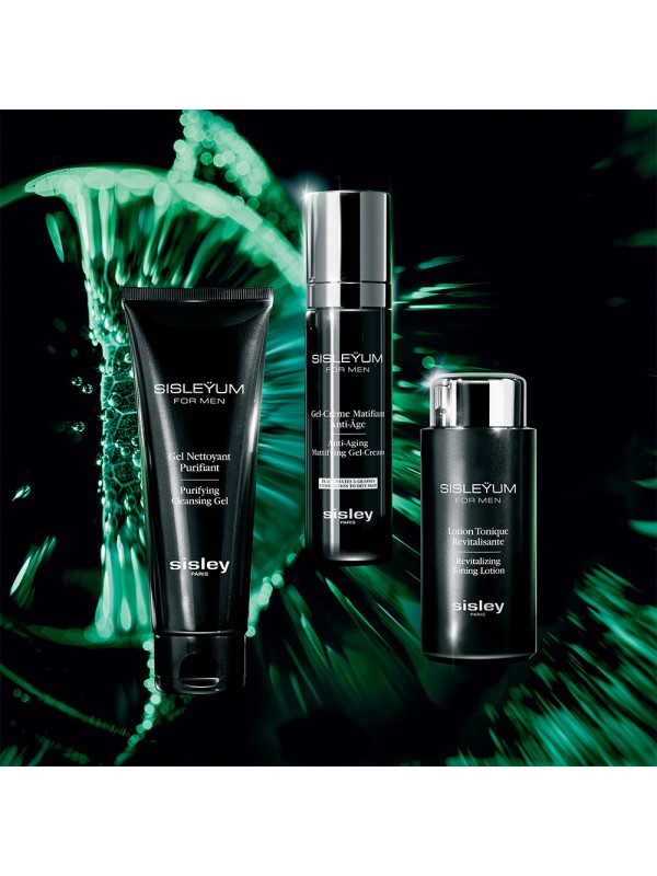 Die Kraft der Natur, verstärkt durch die Wissenschaft. Ihre Haut, von ihrer besten Seite.Multiprotektive, Anti-Aging- und mattierende Pflege speziell für Männerhaut. Die innovative Formel mit dreifacher Wirkungsstärke geht gezielt auf die Bedürfnisse von Mischhaut bis fettiger Haut ein.1. ANTI-AGING-WIRKUNG Es enthält eine Kombination natürlicher Anti-Aging-Wirkstoffe zur Bekämpfung spezifischer Anzeichen der Hautalterung bei Männern: - Isodonis japonicus-Extrakt bekämpft den Verlust der Hautfestigkeit und sorgt für eine straffere, ebenmäßigere Haut. - Adenosin hilft, Falten und Mimikfalten zu glätten.2. Anti-Stress-Maßnahmen* Der erste exklusive Wirkstoff von Sisley Laboratories, Kinkelibas Phyt'active, hilft, die Haut wirksam zu beruhigen und vor täglichen inneren und äußeren Einflüssen zu schützen: - Eine wohltuende Wirkung zur Linderung von Irritationen und Rötungen, die durch verschiedene Einflüsse (Rasur, Umweltverschmutzung usw.) sowie Beschwerden (Trockenheit, Haarwuchs usw.) verursacht werden. - Eine antioxidative Wirkung zur Steigerung des natürlichen Abwehrpotenzials der Haut.3. NEUAUSGLEICHSMASSNAHMEN Reduziert überschüssigen Talg, der für Glanz verantwortlich ist: - Java-Tee-Extrakt verkleinert sichtbar die Poren. - Pflanzliche Stärke hilft, Glanz zu neutralisieren und sorgt für einen sofortigen Mattierungseffekt auf der Haut.Die ultraleichte, nicht fettende und nicht klebrige Textur der Sisleÿum Gel-Crème Matifiant Anti-Âge sorgt schon beim Auftragen für ein sofortiges Frischegefühl.Es schmilzt angenehm auf der Haut und zieht schnell ein, sodass ein „unbedecktes“ Hautgefühl entsteht, das sich praktisch nicht spürbar anfühlt.Der charakteristische Duft von Sisleÿum, ein leichter Duft mit holzigen, amberartigen und würzigen Noten, kombiniert mit ätherischen Ölen von Majoran, Rosmarin und Salbei, bietet einen sofortigen Moment des Wohlbefindens.*Anti-Stress-Hautpflege