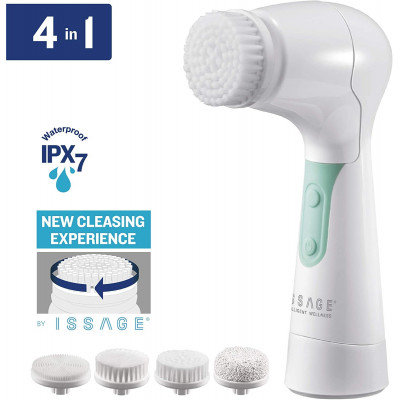 ISSAGE GIROCLEAN 4 IN 1 GESICHTS- UND KÖRPERREINIGER Mit diesem Gesichtsreinigungs-KIT können Sie sich zu jeder Zeit eine Rundumbehandlung Ihrer Haut in Spa-Qualität gönnen. Es wird mit drei Bürsten für verschiedene Arten der Reinigung geliefert, von einer sanften Reinigung bis hin zu einem Peeling oder einer Tiefenreinigung, sowie einem Bimssteinkopf zum Entfernen von Hornhaut. Sie können alle Ihre bevorzugten Reinigungsprodukte mit diesem System verwenden und jede Creme oder Feuchtigkeitscreme, die Sie nach dieser Behandlung auftragen, wird leichter aufgenommen. Die zwei Motordrehzahlen und vier Zubehörteile ermöglichen es Ihnen, das Reinigungsprogramm für verschiedene Bereiche Ihres Gesichts und Körpers mit verschiedenen Reinigungsarten vollständig anzupassen. Vielleicht möchten Sie morgens eine sanfte Reinigung und abends ein Peeling machen. Dieses Kit bietet Ihnen alles, was Sie brauchen, damit Ihre Haut jung aussieht und sich anfühlt und einen gesunden Glanz hat. Dies sind die vier Zubehörteile: 1. Extra weiche Silikonbürste für eine schonende Reinigung der empfindlichsten Hautpartien. 2. Weiche Nylonborstenbürste für die allgemeine Reinigung. 3. Feste Bürste für eine intensivere und exfolierende Reinigung. 4. Bimssteinscheibe zum sanften Entfernen von Schwielen von Ellbogen und Füßen. Sie können Ihre Pinsel reinigen, indem Sie sie unter warmem Wasser abspülen und trocknen lassen. Wir empfehlen den Bürstenwechsel nach 90 Tagen oder sobald ein Bürstenkopf Abnutzungserscheinungen zeigt. Hinweis: Benötigt 2 AA-Batterien (nicht im Lieferumfang enthalten).