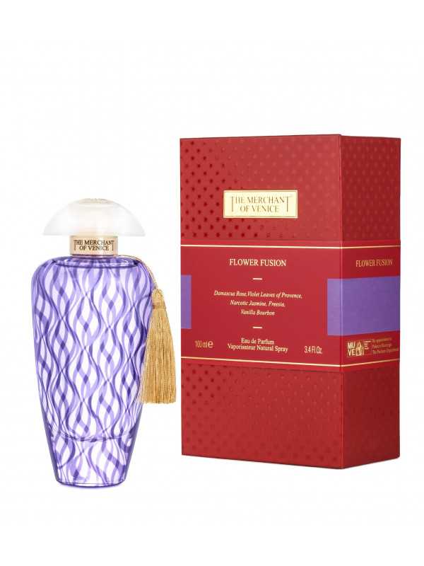 Das Parfüm Flower Fusion ist vom "Muda d'Egipto" inspiriert, da es eine ägyptische Frau mit welligem Haar darstellt, der das Parfüm eine raffinierte Sinnlichkeit verleiht. Sein Hauptbestandteil ist Jasmin, der zusammen mit Veilchenblättern und Ingwer ein reichhaltiges Blumenbouquet ergibt. Sein florientalisches Aroma spiegelt sich auch dank des Funkelns von Patschuli, Zitrone und Freesie wider, das Flower Fusion bietet. Der Kaufmann von Venedig hat seinen konzeptionellen Ursprung in Venedig und seiner Geschichte und in der ewigen Rolle der Stadt als Zentrum der Parfümerietradition auf der ganzen Welt.