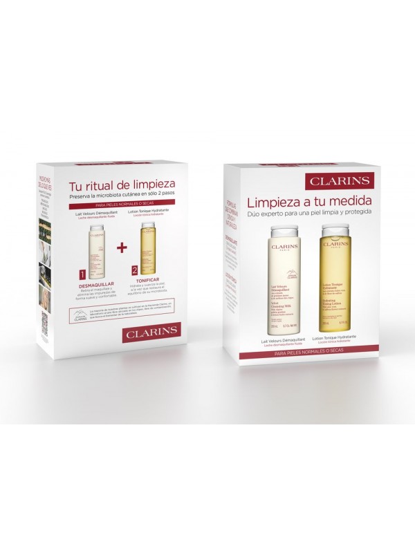 Cofre Limpieza Pieles Normales a Secas – Hidratación y Confort Diario El Cofre de Limpieza Clarins para pieles normales a secas es el dúo perfecto para una limpieza eficaz y respetuosa con la piel. Su combinación de Leche Desmaquillante y Loción Tónica Hidratante elimina impurezas, nutre y refresca, dejando la piel suave, limpia y confortable. Ideal para quienes buscan un ritual de limpieza que mantenga la hidratación natural del rostro. ✔ Leche Desmaquillante (200ml) – Fórmula cremosa que elimina maquillaje e impurezas sin resecar, respetando el equilibrio de la piel. ✔ Loción Tónica Hidratante (200ml) – Tónico sin alcohol que calma, refresca e hidrata, preparando la piel para los tratamientos posteriores.