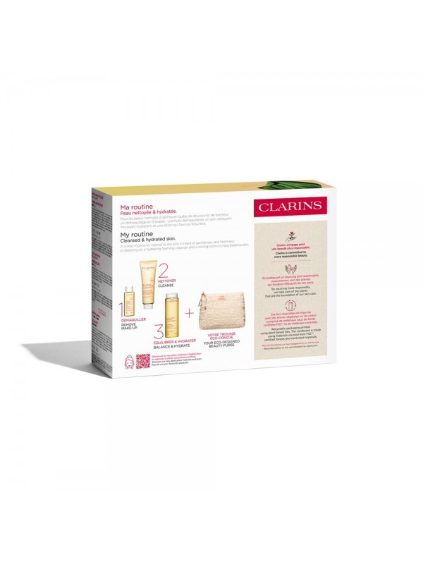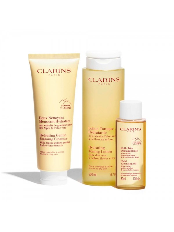 El Cofre de Limpieza Clarins para pieles normales a secas ofrece una limpieza eficaz y delicada. Con Leche Desmaquillante y Loción Tónica Hidratante, elimina impurezas sin resecar, dejando la piel suave y fresca.