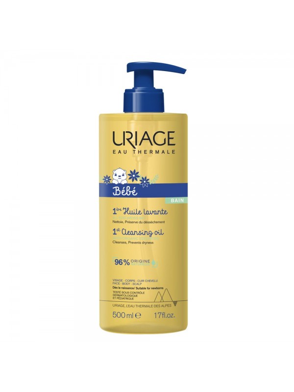 URIAGE 1st CLEANSING OIL. "This nourishing Cleansing Oil gently cleanses and protects baby's skin. Its formula with the natural complex [Agua termal de Uriage + Edelweiss orgánico] combined with gentle lipid-replenishing agents, protects the skin from the drying effects of water, leaving a protective film."