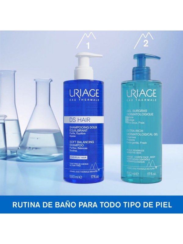 [CHAMPÚ DIARIO ULTRASUAVE] : Formulated for daily use, the Gentle Regulating Shampoo is also beneficial for all hair types, proving to be extremely gentle on sensitive scalps. Ideal for the whole family.[CHAMPÚ PURIFICANTE Y REGULADOR] : Enriched with purifying PIROCTONE OLAMINE, sebum-regulating EUCALYPTUS, and soothing URIAGE THERMAL WATER, this shampoo is known for its purifying and regulating qualities. The TLR2-REGUL PATENT helps to limit irritation, leaving a feeling of comfort and freshness.[CUERO CABELLUDO DE ASPECTO SALUDABLE Y CABELLO BRILLANTE] : Experience the benefits of a healthy-looking scalp and shinier, silkier hair in just one application. This shampoo leaves your scalp looking healthier and your hair feeling softer, shinier, and silkier. Proven results: 98% leave hair silky* and 95% experience comfort and freshness*.[CHAMPÚ ESPUMOSO] : The creamy lather of this shampoo rinses out easily, leaving a fresh, floral scent. Ideal for men and women.[SEGURIDAD] : Developed and recommended by dermatologists - Suitable for all hair types - Does not sting the eyes - High tolerance - Soap-free[MARCA RECOMENDADA POR DERMATÓLOGOS] : Uriage products, developed in collaboration with dermatologists, offer a wide range of high-tolerance skincare products, suitable for different skin types, including extra dry, sensitive, mature, oily and acne-prone skin, intended for people of all ages.*Clinical study under dermatological control - 58 subjects - in combination with DS Hair Anti-Dandruff Treatment Shampoo or DS Hair Keratoreducing Treatment Shampoo. % Satisfaction.