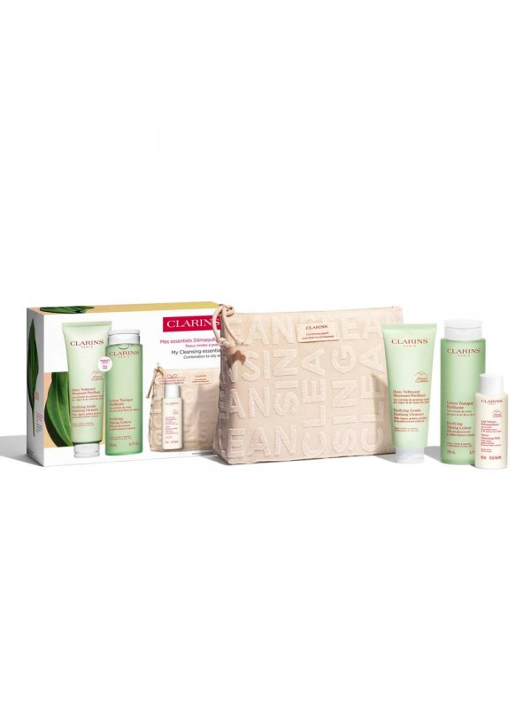 The Clarins Combination-Oily Skin Cleansing Set purifies, balances and deeply cleanses, leaving skin fresh, matte and free of impurities.