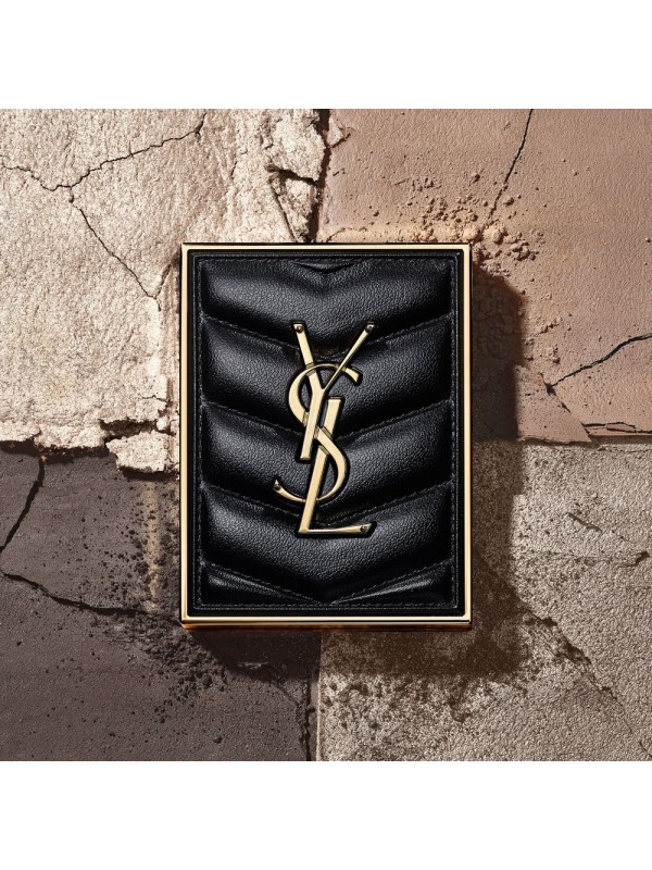 A black lacquered piece with nuances in which you can see yourself. In the center, embedded in the glass, YSL's iconic Cassandre logo.