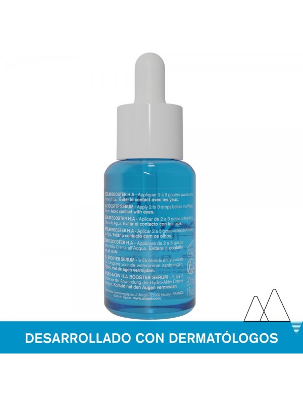 Hyaluronic Acid Serum for a 3-in-1 solution: hydrates, redensifies, and smooths the skin for an impressive 86% redensifying effect*. For skin that's not just smooth, but with a peachy-peel effect. The Booster Serum has a fresh, lightweight texture and is easy to apply thanks to its convenient dropper.A highly concentrated hydrating serum with hyaluronic acid that redensifies, smooths, and provides 24-hour hydration. This hydrating serum is enriched with marshmallow flower, a hydrating and antioxidant ingredient. Its patented complex stimulates the skin's natural defenses.A delightful aroma of bergamot and peach, with a hint of cedar. Suitable for all skin types, even sensitive. Non-greasy.Non-comedogenic - Paraben-free - 97% naturally derived ingredientsUriage products, developed in collaboration with dermatologists, offer a wide range of high-tolerance skincare suitable for different skin types, including extra dry, sensitive, mature, oily and acne-prone skin, adapting to people of all ages. *Usage test - 22 volunteers - 21 days: % satisfaction