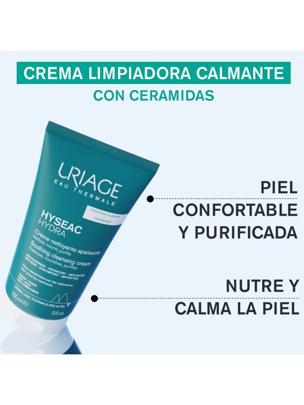 Purify: HYSÉAC Cleansing Cream disinfects the skin and regulates bacterial flora. Calm: The effect of the patented Cerasterol-2F complex allows HYSÉAC Cleansing Cream to soothe and regenerate the skin. Reduces skin dryness: HYSÉAC Cleansing Cream, enriched with Uriage Thermal Water and Cerasterol-2F, provides protection and intense hydration to irritated skin.