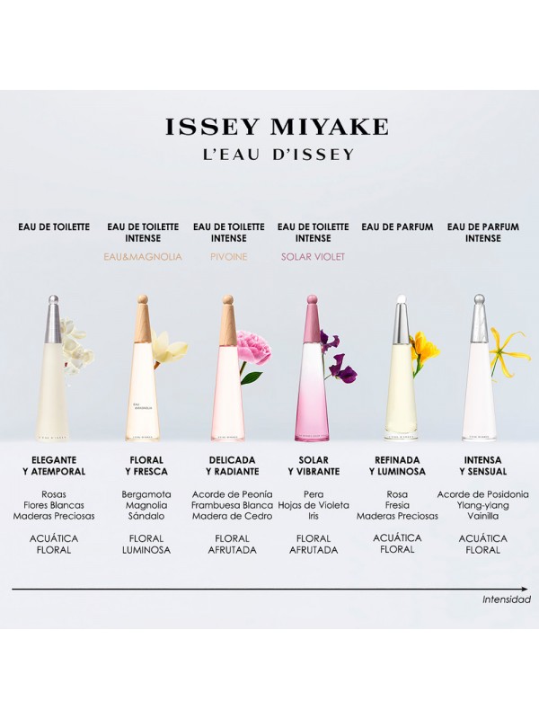 Cofre femenino del Día de la Madre L’Eau d’Issey Eau de Toilette de Issey Miyake. Este año, reconecta con las maravillas de la naturaleza con Issey Miyake Parfums. Creado en colaboración con el diseñador Philippe Apeloig, el diseño de este cofre regalo captura la frescura de la primavera cuando la naturaleza despierta y revela todos sus sentidos.Este cofre de regalo femenino incluye: - L’Eau d’Issey Eau de Toilette de 100 ml. - Loción corporal hidratante L’Eau d’Issey de 50 ml. - Tamaño viaje L’Eau d’Issey Eau de Toilette de 10 ml. Una fragancia floral acuática femenina Disfruta de un delicado ritual con una fragancia floral con notas de lirio blanco y loto, realzadas por acordes de agua fresca y madera rica. Esta fragancia captura la esencia de una gota de agua sobre la piel. Un cofre 100% de cartón, elaborado de forma más responsable Un bonito frasco para reutilizar. Piensa en darle una segunda vida o en reciclarlo. Inspirándose en la naturaleza, Issey Miyake Parfums imagina diseños sensoriales. Sin plástico, este envase exterior está fabricada con materiales procedentes de bosques con certificación FSC® y otras fuentes controladas. Su tamaño ha sido pensado para limitar los materiales superfluos y reducir los residuos.