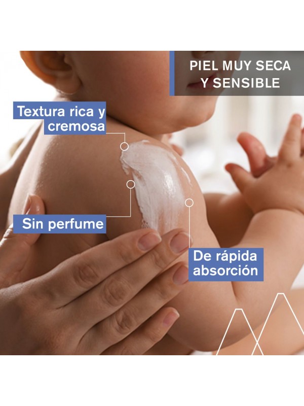 "Esta emulsión suave y cremosa hidrata intensamente la delicada piel del bebé y evita la sequedad. Su fórmula, que incluye el complejo natural [Agua Termal de Uriage + Edelweiss Bio] combinada con Escualeno Vegetal, crea una película protectora y una acción nutritiva de larga duración. Su ventaja: su textura fundente, no grasa y ligeramente perfumada permite una aplicación rápida."