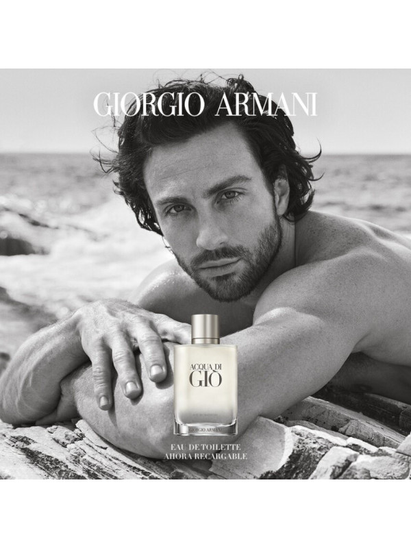 La fragancia masculina mas icónica de Giorgio Armani ahora presentada en un nuevo frasco recargable. Inspirada en el Mediterráneo, simboliza la perfección de la naturaleza y el poder del mar.Acqua di Giò Eau de Toilette es un perfume que se inicia con notas marinas y de bergamota, para crear su icónica frescura estimulante. En el corazón, se encuentra una mezcla de jazmín, madera de cedro y romero, evocando el paisaje mediterráneo. Las notas de base de almizcles blancos y pachulí capturan la fuerza masculina de la fragancia.Este clásico y sensual perfume de hombre se presenta en un nuevo frasco recargable en todos los formatos, fiel al compromiso de Giorgio Armani con un futuro mejor. El nuevo diseño conserva su cristal esmerilado, firma de la fragancia, que progresa hacia la transparencia en la base con un elegante degradado. En su base transparente se encuentra grabado el logo de Giorgio Armani, mientras que en la tapa metálica color plata, se puede apreciar el monograma.