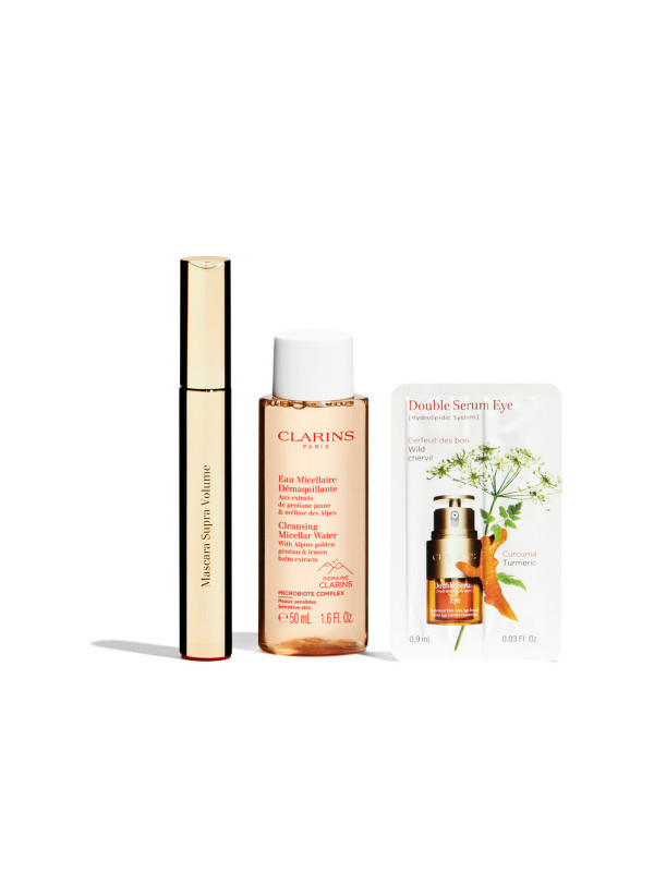 8ML MASCARA SUPRA VOLUME EUROPE RETAIL+ 50ML CLEANSING MICELLAR WATER TRIAL + 0,9ML DOUBLE SERUM EYE SAMPLE SACHET