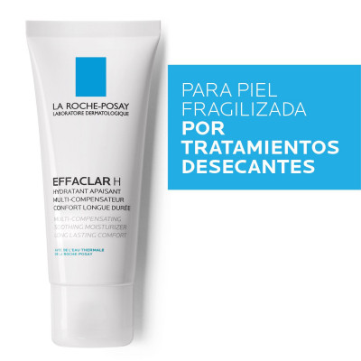 Effaclar H de La Roche-Posay es una hidratante calmante multi-compensadora, especialmente formulada para pieles grasas con acné fragilizadas por tratamientos desecantes tales como isotretinoína oral. Calma e hidrata la piel, devolviéndole todo el confort.Eficacia probada: • Desde la primera aplicación, calma la piel intensamente y recupera el confort y la elasticidad. Las zonas secas, las rojeces y las escamas se reducen de manera visible; la piel está más lisa al tacto. • Se reduce un 64% la sequedad de la piel*.Formulación experta: • MP-LÍPIDOS: Nueva generación de lípidos que ayudan a reconstruir la barrera de la piel en sus diferentes dimensiones, devolviéndole la hidratación. • NIACINAMIDA + BOSABOLOL: Antiinflamtorio. Calma intensamente y reduce la inflamación producida por las lesiones, a la vez que reduce la sensación de quemazón, recuperando el confort y la elasticidad de la piel. Fórmula testada en pieles con tendencia acnéica en combinación con tratamientos desecantes. No comedogénica. Acabado no graso.Consejos de uso: Aplicar mañana y/o noche, 7 días a la semana. • Aplicar Effaclar H hidratante calmante multi-compensadora sobre todo el rostro después de limpiar la piel con Effaclar H Crema Limpiadora. • Su textura crema se aplica de forma fácil. Rápida absorción. • Acabado no graso y no pegajoso que compensa los efectos secundarios, tanto visibles como experimentados, de los tratamientos desecantes acti-acné. • Evitar el contorno de ojos. Si entra en contacto con éstos, aclarar abundantemente con agua.*Evaluado dermatológicamente. Encuesta de resultado dermatológico en 30 pacientes tomando de manera oral Isotrerinon durante al menos un mes. Resultados después de 4 semanas de uso.