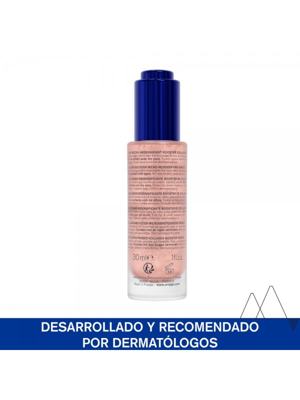 "SÉRUM ANTIEDAD: Este sérum redensifica la piel con un doble aporte de colágeno* y ayuda a la piel a aumentar su nivel de colágeno gracias a un aporte de procolágeno X6 . Proporciona a la piel un efecto relleno inmediato. Actúa sobre los 10 signos de la edad (arrugas, flacidez, pérdida de firmeza, volumen, densidad y elasticidad, falta de luminosidad, manchas oscuras) para una piel más redensificada, rellena y luminosa. * Test in vitro de los ingredientesMÁS DE 8000 MICROESFERAS: Este sérum ligero, fresco y no pegajoso tiene una textura activa única con transformación de agua en aceite para una mejor conservación e impregnación de la piel. Aporta confort y un efecto rosáceo instantáneo a la piel. Aplicar unas gotas por la mañana y/o por la noche en rostro, cuello y escote.PARA TODO TIPO DE PIELES: Este producto es para todas las pieles maduras, incluso sensibles, para las arrugas y la flacidez, pero también puede utilizarse como cuidado a partir de los 25 años.PRO-COLÁGENO x6: El péptido procolágeno estimula la expresión de ciertas proteínas dérmicas, incluyendo el colágeno para redensificar y rellenar la piel. El retinol ayuda a combatir las líneas de expresión, las arrugas, el tono apagado y las manchas oscuras.MARCA RECOMENDADA POR DERMATÓLOGOS : Los productos Uriage, desarrollados en colaboración con dermatólogos, ofrecen una amplia gama de cuidados de alta tolerancia adecuados para diversos tipos de piel, incluidas las pieles extrasecas, sensibles, maduras, grasas y con tendencia acneica, que se adaptan a personas de todas las edades. "