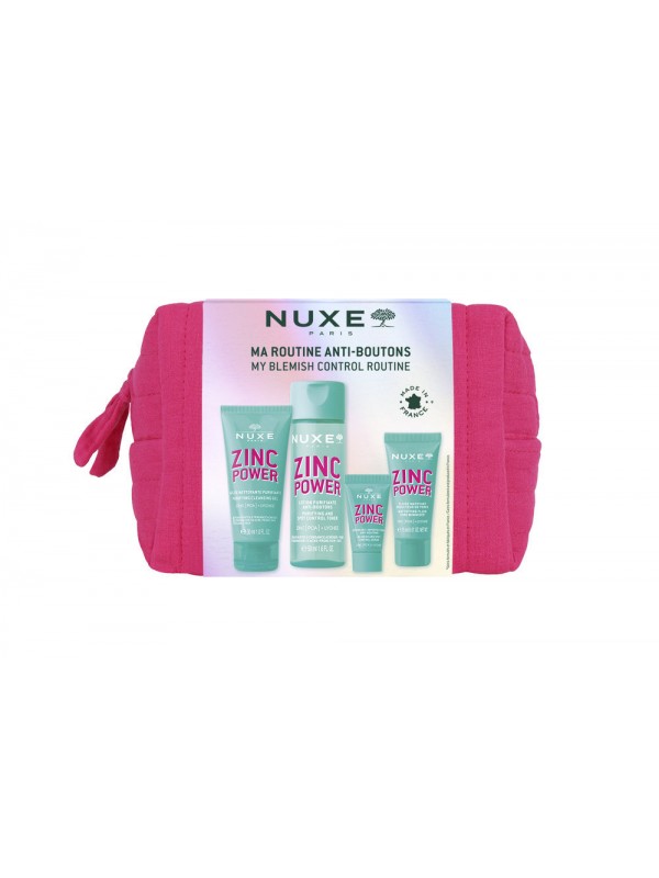 ¡Mi piel, mi amor! Presume de una piel purificada, suave y radiante.Descubre los beneficios del Zinc [PCA] y el extracto de lichi con la gama ZINC POWER, especialmente diseñada para pieles mixtas a grasas, con tendencia acneica. La rutina completa, probada dermatológicamente, matifica y afina la textura de la piel, a la vez que ofrece una experiencia sensorial única.Una rutina purificante de 4 pasos:- Paso 1: El primer paso esencial en la rutina anti-imperfecciones, el Gel Limpiador Purificante (30 ml) limpia en profundidad, matifica y minimiza los poros sin resecar la piel.- Paso 2: El segundo paso de la limpieza, el Loción Purificante Anti-imperfecciones (50 ml), afina la textura de la piel y la matifica, dejándola limpia y reconfortada.- Paso 3: Aplicar una pequeña cantidad del Sérum Anti-imperfecciones (5 ml), que ayuda a reducir las imperfecciones, atenúa las marcas y minimiza los poros. En solo 7 días, la textura de la piel se afina y las imperfecciones se reducen.- Paso 4: Completa tu rutina con el Fluido Matificante Minimizador de Poros (15 ml), que minimiza los poros y ayuda a reducir las imperfecciones (manchas, puntos negros) para una piel más suave.Con esta rutina, las imperfecciones (granitos, puntos negros...) se reducen para el 86 % de las usuarias*.Productos formulados y producidos en Francia.Neceser fabricado con materiales reciclados:Exterior: gasa 100 % algodón, del cual un 65 % es recicladoAcolchado: 100 % poliéster, del cual el 100 % es recicladoForro: 100 % algodón, del cual un 65 % es recicladoDimensiones: 18 x 12 x 8 cm*Prueba de uso - 29 voluntarias. % de satisfacción tras 56 días de uso de la rutina