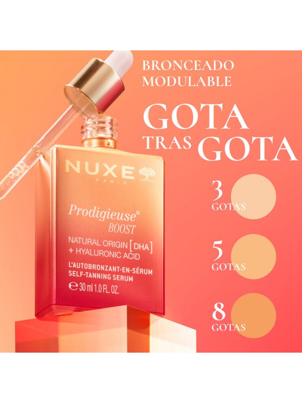 Un teint hâlé toute l'année ! Ce sérum associe un soin spécifique aux bienfaits d'un autobronzant. Sa formule innovante, enrichie en acide hyaluronique, hydrate durablement et repulpe la peau. Composé à 100 % de DHA d'origine naturelle, ce soin offre un hâle doré naturel, uniforme et progressif, comme après des vacances, toute l'année ! Résultats immédiats et visibles : - Dès la première application : le hâle doré est naturel pour 100 % des femmes*. - En 7 jours : le produit offre un bronzage sur mesure pour 90 % des femmes**. La peau est repulpée pour 95 % des femmes**. - Après l'arrêt de l'utilisation : le hâle doré est visible pendant au moins 3 jours pour 100 % des femmes***. Sa texture légère pénètre facilement, laissant la peau douce et confortable. Le produit ne sent pas le DHA, mais offre un parfum frais et pétillant aux notes de jasmin et de litchi rose. Il ne tache pas. Soin formulé et fabriqué en France. *Test réalisé sous contrôle dermatologique. 21 volontaires. Pourcentage de satisfaction immédiatement après application du sérum seul. **Test réalisé sous contrôle dermatologique. 21 volontaires – Pourcentage de satisfaction après 7 jours d'utilisation du sérum seul. ***Test réalisé sous contrôle dermatologique. 21 volontaires. Pourcentage de satisfaction 3 jours après l'arrêt de l'application du sérum seul.
