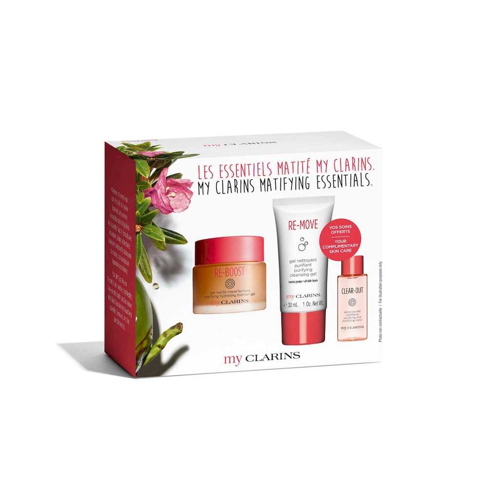 Gel Matifiant Anti-Imperfections 50 ml + Gel Nettoyant Purifiant 30 ml + Lotion Matifiante 10 mlLe gel au fini mat pour les imperfections absorbe l'excès de sébum, matifie la peau et contrôle la brillance.Il réduit également visiblement les imperfections, purifie et élimine les impuretés. Lisse et affine le grain de peau, apporte luminosité et fraîcheur à la peau, tout en la revitalisant.