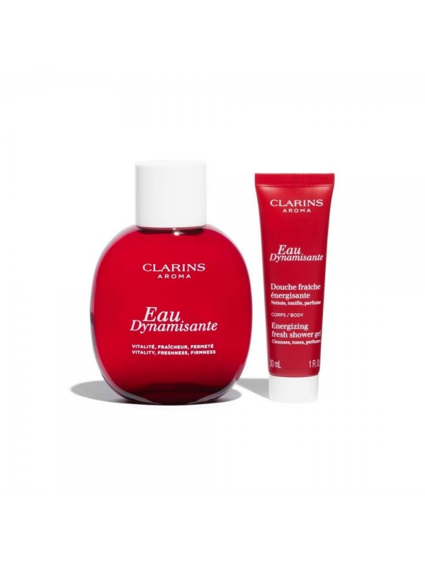 Ce coffret rassemble la mythique Eau Dynamisante, première eau de soin de Clarins , et un soin corps au parfum revitalisant : un gel douche enrichi en extrait d'aloe vera. Ce rituel énergétique parfume, revitalise et tonifie le corps et l'esprit. Il est parfait pour bien démarrer la journée ou lutter contre une fatigue passagère. Tous ces soins sont présentés dans une grande trousse de toilette.