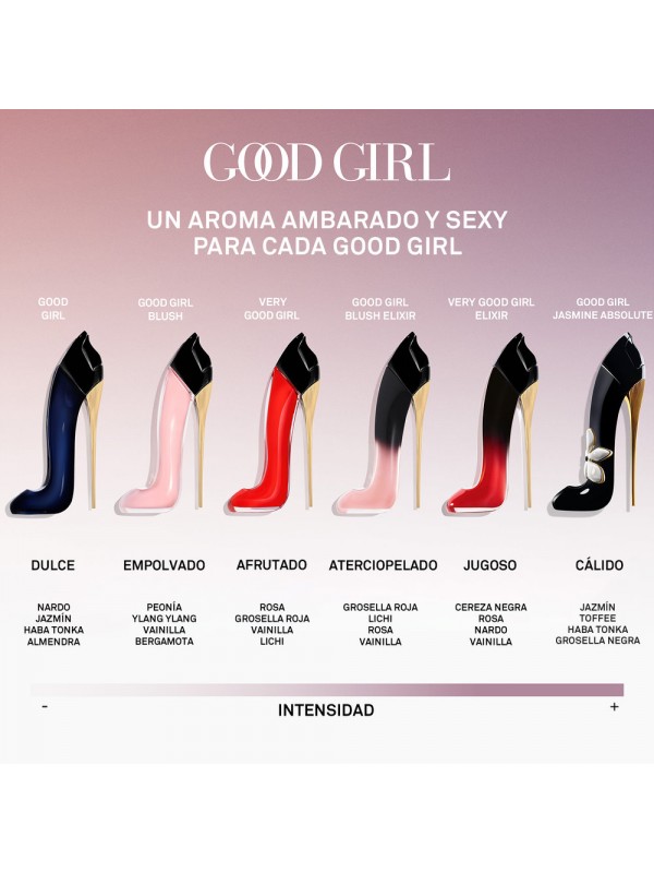 Good Girl est un parfum sensuel et sophistiqué, qui reflète la dualité des femmes. Ce parfum innovant capture la complexité des femmes avec des ingrédients d'exception. Chaque partie du parfum est le reflet de la femme Herrera. Un parfum fruité et boisé, avec un contraste d'accords qui reflètent parfaitement le concept de dualité.