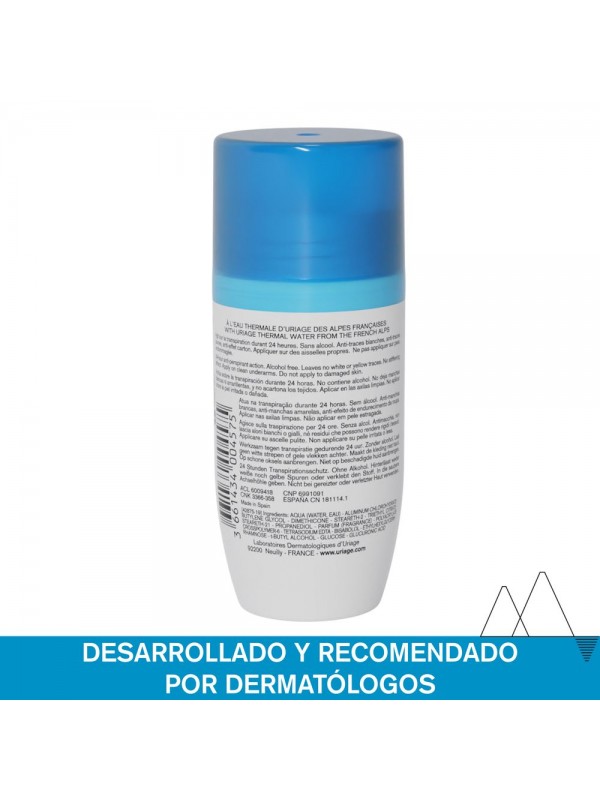 Déodorant triactif URIAGE - Anti-odeurs, anti-transpirant - Efficacité 24h en cas de forte transpiration - Parfum frais, unisexe - Large application roll-on - Ne laisse aucune trace blanche ni jaune - Sans alcool