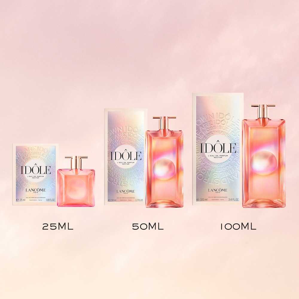 Découvrez avec Lancôme la nouvelle signature olfactive révolutionnaire d'Idôle enveloppée dans un accord pop-corn addictif aux notes de caramel chaud. Un parfum qui rassemble les femmes Idôle, qui ensemble feront avancer le monde pour le changer, en transmettant ce nouveau message : Rejoignez, soyez votre propre Idôle.Idôle Nectar présente une nouvelle version gourmande et appétissante empreinte de modernité. L'essence de rose Isparta couplée à la vanille sont enveloppées d'une douceur texturée : un accord pop-corn EXPLOSIF addictif et surprenant, infusant ce parfum néo-appétissant de notes de caramel ardent.La génération des femmes Idôle se rassemble à nouveau et elles sont prêtes à aller encore plus loin, il est temps de faire avancer le monde en diffusant ce nouveau message : Unite, be your own Idôle.LA BOUTEILLE: Puissante dans sa création, la nouvelle Idôle Eau de Parfum Nectar s'habille d'une teinte pêche ardente et un halo holographique, au cœur, lui confère un éclat luxueux pour un impact encore plus intense. Un véritable objet de désir. Le flacon est en verre recyclé et son auréole holographique exprime la détermination et l'optimisme de la génération de femmes Idôle. Tu n'es pas née femme Idôle mais tu le deviens car UNIS on est plus fort, UNIS on réussit, UNIS NOUS SOMMES IDOLE.NOTES OLFACTIVES :Note de tête : Isparta Rose Essence de rose d'Isparta, associée à l'essence de rose centifolia de Grasse, eau d'ours, absolue de rose… Les reines des roses, facettées d'accents aériens captivants et sensuels, créent une explosion de fraîcheur florale ! Tu savais que...? Lancôme soutient les producteurs, garantissant un revenu équitable tout en renforçant les bonnes pratiques agricoles avec le Projet d'Approvisionnement Solidaire Rose Isparta. Note de coeur : Accord Popcorn. Une douceur texturée qui crée une expérience instantanément addictive grâce à son accord pop-corn surprenant qui infuse ce parfum néo-appétissant de notes de caramel chaud. Note de fond : Vanille Une vanille texturée et appétissante qui vient réveiller l'espoir d'une génération, à la fois puissante et irrésistible, donnant à cette composition une addiction immédiate. Tu savais que...? La fleur de vanille est soigneusement pollinisée à la main pendant sa floraison de 24 heures. Ensuite, 18 mois de maturation seront nécessaires pour obtenir l'arôme vanillé le plus riche et le plus exceptionnel.