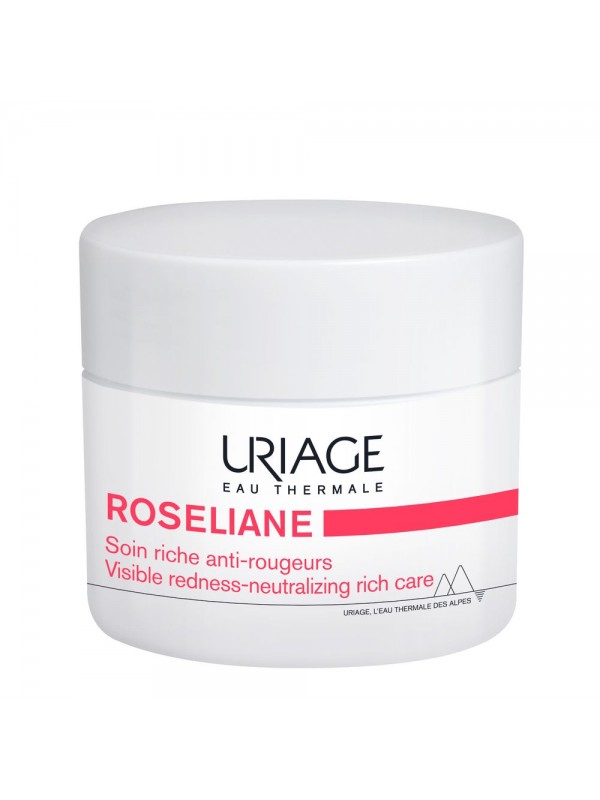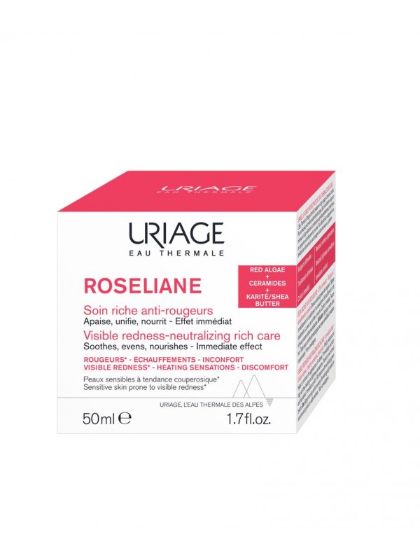 Crème riche anti-rougeurs Uriage Roseliane au beurre de karité, ginseng et extraits d'algues - Apaise, hydrate et réduit les rougeurs. Crème visage riche pour un confort durable - pour peaux sèches et sensibles - Non comédogène
