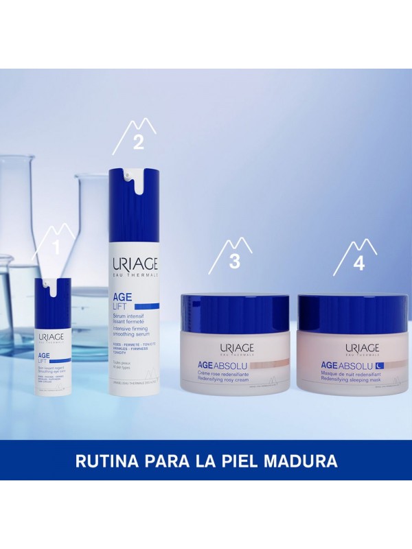 URIAGE AGE ABSOLU Crème anti-âge au rétinol, à l'acide hyaluronique et aux vitamines C et E. Booster de pro-collagène x6. Réduit visiblement les rides. Texture rose crémeuse pour un éclat instantané. Brevet anti-âge exclusif.