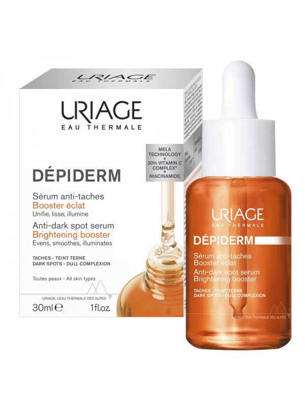 Le sérum à la vitamine C de Dépiderm possède une formule haute tolérance conçue pour les peaux sensibles. Quel que soit votre type de peau, profitez des bienfaits d'un sérum visage pour un teint éclatant. La vitamine C stabilisée offre des bienfaits embellissants et laisse votre peau rayonnante.Taches brunes réduites en seulement 28 JOURS*. Ce sérum ravive l'éclat, unifie le teint, lisse et illumine la peau. Il cible différents types de taches : taches brunes, mélasma (masque de grossesse), imperfections post-peeling ou post-intervention esthétique, et teint terne.Complexe à 20 % de vitamine C pour un teint uniforme et éclatant. Sérum visage à la niacinamide pour une correction complète des taches brunes et une action préventive.Convient aux peaux sensibles - Non comédogène - Sans parfum - 94 % d'ingrédients d'origine naturelle.Les produits Uriage, développés en collaboration avec des dermatologues, offrent une large gamme de soins haute tolérance adaptés à différents types de peau, notamment les peaux très sèches, sensibles, matures, grasses et à tendance acnéique, ce qui les rend adaptés à tous les âges.