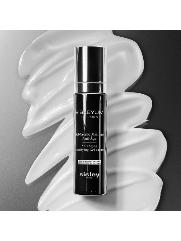 La puissance de la nature décuplée par la science. Votre peau, à son meilleur.Soin multiprotecteur, anti-âge et matifiant, spécialement conçu pour la peau des hommes. Une formule innovante à 3 niveaux d'action pour répondre efficacement aux besoins spécifiques des peaux mixtes à grasses.1. ACTION ANTI-ÂGE Il contient une combinaison d'actifs anti-âge naturels pour lutter contre les signes spécifiques du vieillissement cutané chez l'homme : L'extrait d'Isodonis japonicus combat la perte de fermeté, pour une peau plus ferme et plus tonique. L'adénosine contribue à lisser les rides et les ridules d'expression.2. ACTION ANTI-STRESS* Premier actif exclusif créé par les Laboratoires Sisley, le Phyt'active de Kinkeliba contribue à apaiser et à protéger efficacement la peau contre les agressions quotidiennes internes et environnementales : - Une action apaisante pour réduire les irritations et les rougeurs liées à de multiples agressions (rasage, pollution...) ainsi qu'aux inconforts (sécheresse, repousse des poils...) - Une action antioxydante pour renforcer les défenses naturelles de la peau.3. MESURES DE RÉÉQUILIBRAGE Réduit l'excès de sébum responsable de la brillance : L'extrait de thé de Java resserre visiblement les pores. L'amidon végétal aide à neutraliser la brillance et procure un effet matifiant instantané à la peau.Ultra-légère, non grasse et non collante, la texture du Gel-Crème Matifiant Anti-Âge de Sisleÿum offre une sensation de fraîcheur immédiate dès son application.Elle fond agréablement sur la peau et pénètre rapidement pour un fini « peau nue » pratiquement imperceptible au toucher.Le parfum signature de Sisleÿum, une fragrance légère aux notes boisées, ambrées et épicées, associée aux huiles essentielles de marjolaine, de romarin et de sauge, offre un moment de bien-être instantané.*Antistress cutané