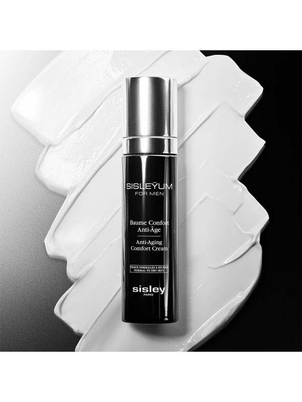 La puissance de la nature décuplée par la science. Votre peau, à son meilleur.Soin multiprotecteur, anti-âge et matifiant, spécialement conçu pour la peau des hommes. Une formule innovante à 3 niveaux d'action pour répondre efficacement aux besoins spécifiques des peaux normales à sèches.1. ACTION ANTI-ÂGE Une combinaison d'actifs anti-âge naturels pour lutter contre les signes spécifiques du vieillissement cutané chez l'homme : L'extrait d'Isodonis japonicus combat la perte de fermeté, pour une peau plus ferme et plus tonique. L'adénosine contribue à lisser les rides et les ridules d'expression.2. ACTION ANTI-STRESS* Premier actif exclusif créé par les Laboratoires Sisley, le Phyt'active de Kinkeliba contribue à apaiser et à protéger efficacement la peau contre les agressions quotidiennes internes et environnementales : - Une action apaisante pour réduire les irritations et les rougeurs liées à de multiples agressions (rasage, pollution...) ainsi qu'aux inconforts (sécheresse, repousse des poils...) - Une action antioxydante pour renforcer les défenses naturelles de la peau.3. ACTION NUTRITIVE Elle procure tout le confort nécessaire aux peaux sèches : Le beurre et l'huile de karité, ainsi que l'huile de tournesol, apportent une nutrition intense à la peau. Le phytosqualane hydrate et renforce le film protecteur de l'épiderme.La texture innovante de ce soin anti-âge allie la légèreté d'un fluide au confort d'une crème. Elle pénètre rapidement et laisse un fini mat, non collant et longue tenue.Le parfum signature de Sisleÿum, une fragrance légère aux notes boisées, ambrées et épicées, associée aux huiles essentielles de marjolaine, de romarin et de sauge, offre un moment de bien-être instantané.Agents anti-agression cutanée
